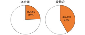本会議での議員間討議を導入している議会は全体の24%、委員会での導入は42%とされています。